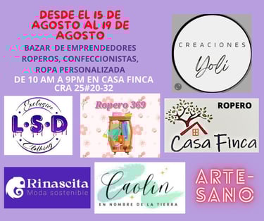 Ferias de emprendedores textiles con, ropa nueva de elaboración propia, ropa personalizada pintada a mano, ropa interior de elaboración local, roperos de segunda oportunidad.